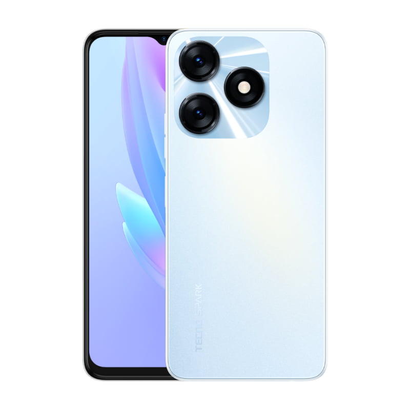 The Tecno Spark 10 is available in trendy colors like White, Black, and Blue